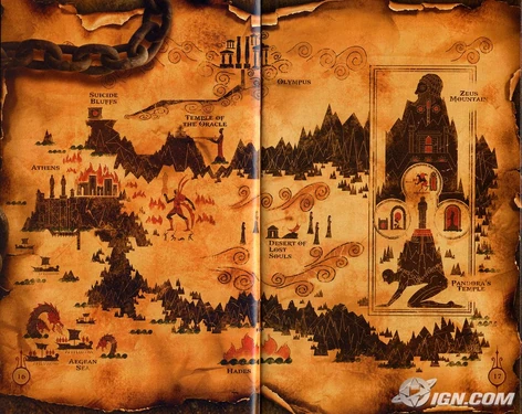 The player becomes involved in Kratos' story as he is approaching Athena's city, Athens, under siege by Ares' army. While in the Aegean Sea, Kratos's ship is attacked by Ares's forces. After impaling the massive heads of the fearsome Hydra, Kratos is approached by Athena, who wants him to stop Ares and save her city. Kratos agrees on one condition; that the gods relieve him of the nightmarish memories of his past crimes, as well as allowing him a chance at redemption. Kratos fights his way through the attacking forces to find the Oracle of Athens, and learns from her that only Pandora's Box can give a mortal the power to kill a god. Unfortunately, due to the gods' fear of this power, the box is locked deep within Pandora's Temple, constructed on the back of the Titan Cronos, whom Zeuscursed to wander the Desert of Lost Souls until the sands rip the flesh from his bones.